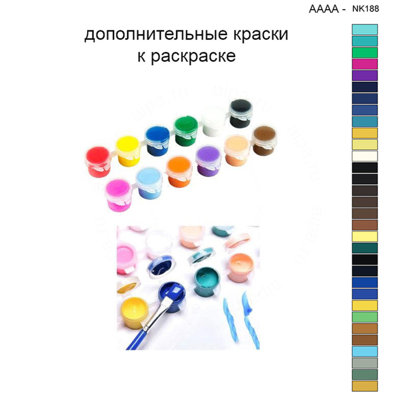 Этот набор красок является дополнительным и полностью совпадает с красками, поставляемыми в комплекте с картиной AAAA-NK188