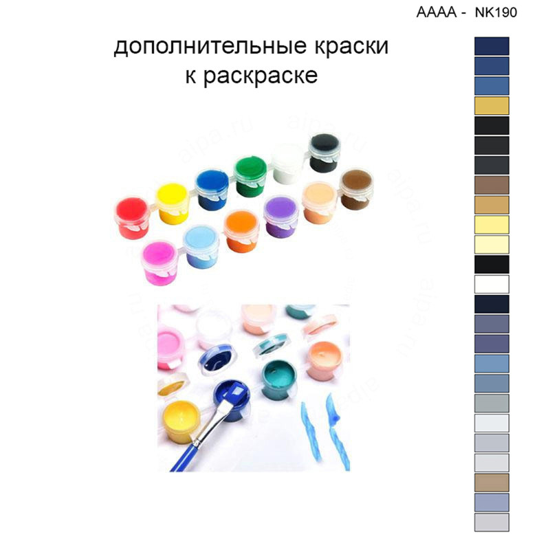 Этот набор красок является дополнительным и полностью совпадает с красками, поставляемыми в комплекте с картиной AAAA-NK190