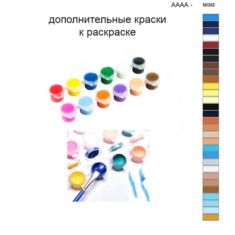 Этот набор красок является дополнительным и полностью совпадает с красками, поставляемыми в комплекте с картиной AAAA-NK849