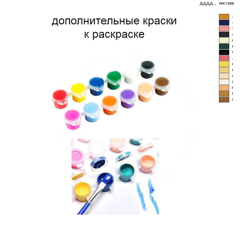 Этот набор красок является дополнительным и полностью совпадает с красками, поставляемыми в комплекте с картиной AAAA-NK1386