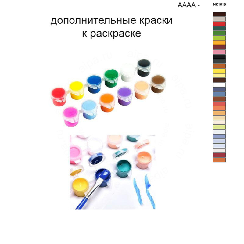 Этот набор красок является дополнительным и полностью совпадает с красками, поставляемыми в комплекте с картиной AAAA-NK1619