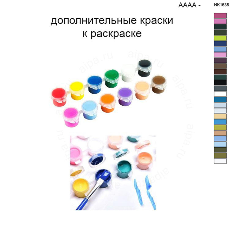 Этот набор красок является дополнительным и полностью совпадает с красками, поставляемыми в комплекте с картиной AAAA-NK1638