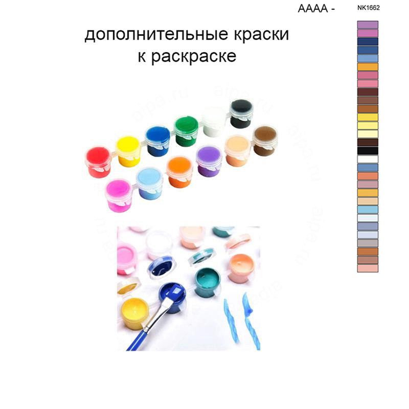 Этот набор красок является дополнительным и полностью совпадает с красками, поставляемыми в комплекте с картиной AAAA-NK1662