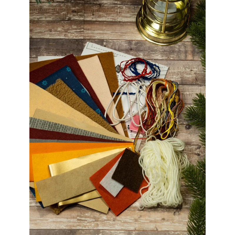 В наборе: натуральная хлопковая ткань, искусственный мех и кожа, фетр, нитки мулине, пряжа, тесьма-вьюнок, бисер, проволока, картон, листы с выкройками и подробная инструкция по изготовлению игрушки.