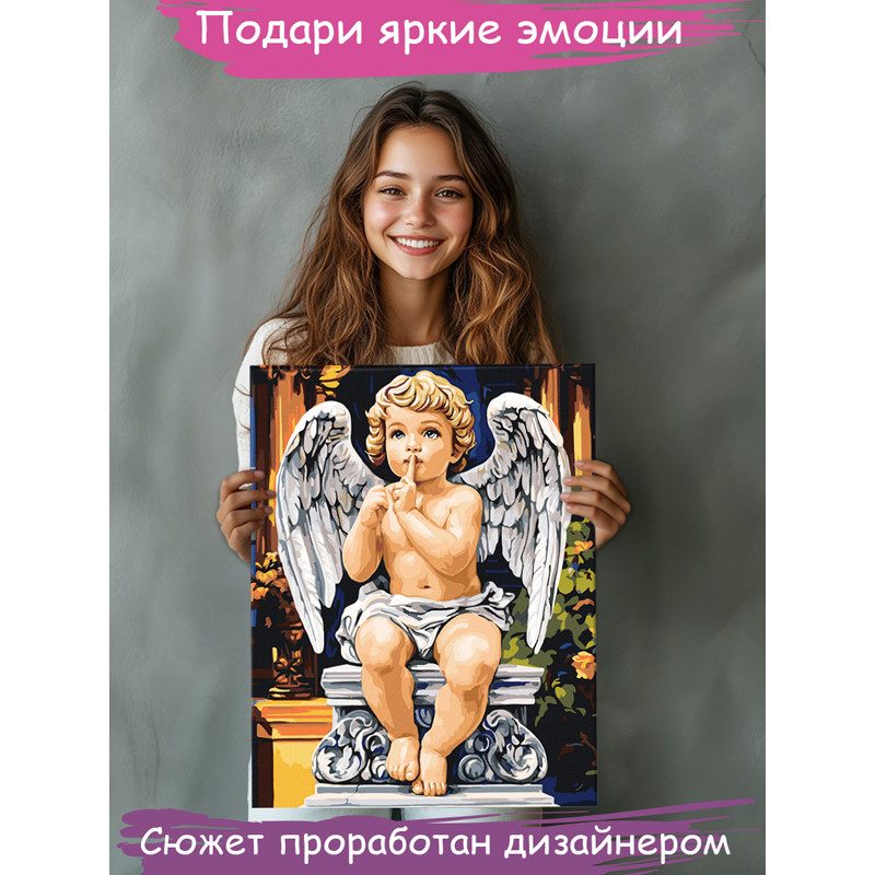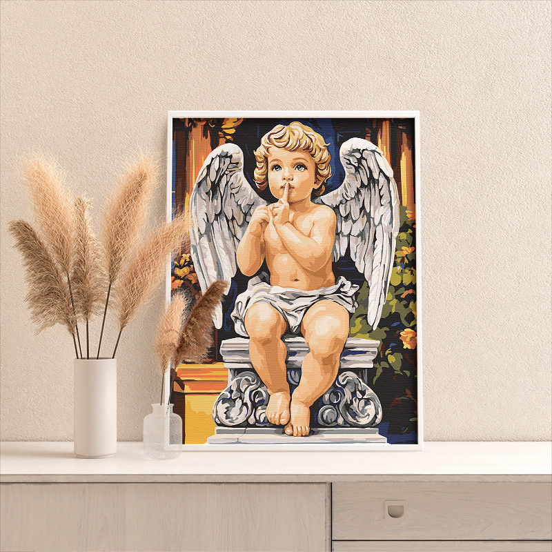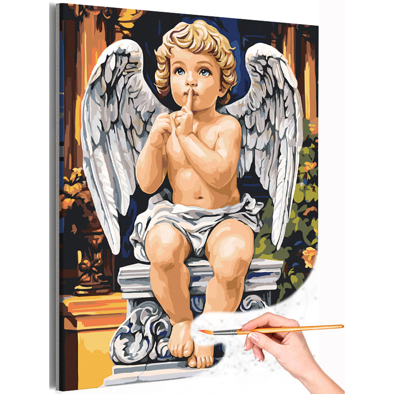 Ангел Классика Ангел хранитель Ребенок Ангелочки детки Ангелочек Мальчик Раскраска картина по номерам на холсте
