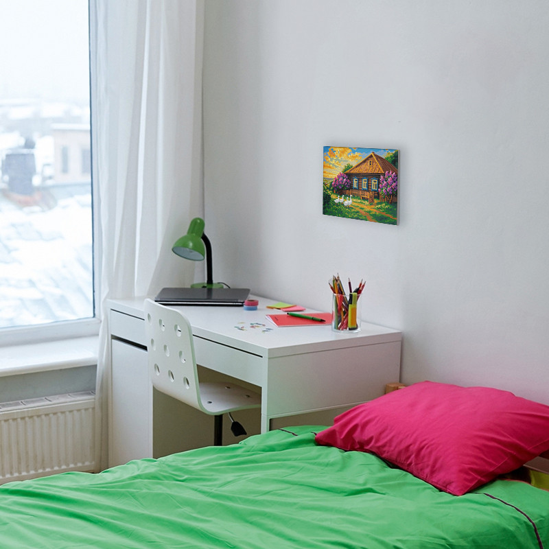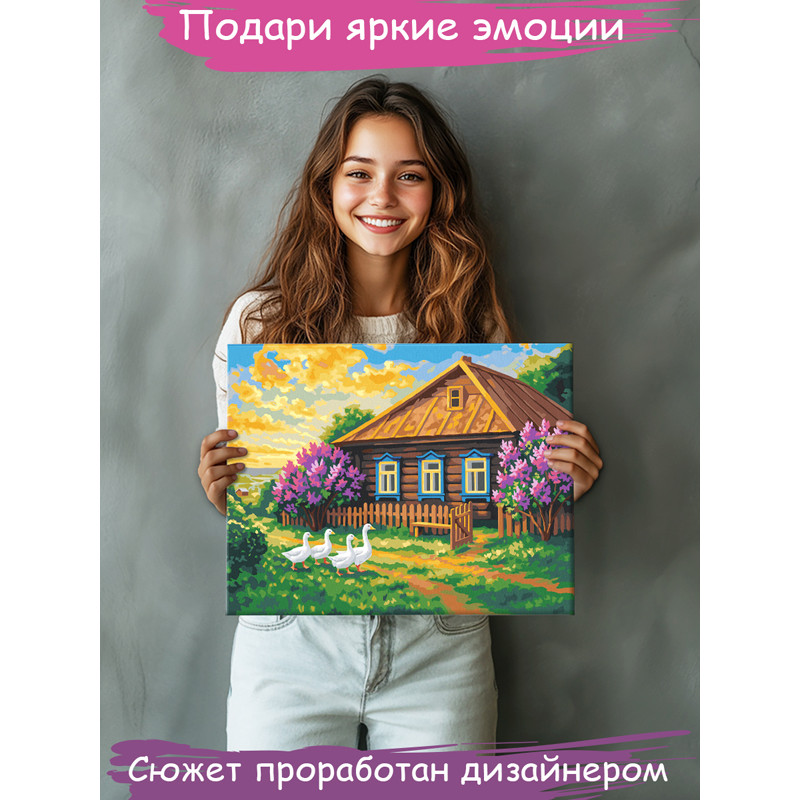Домик в деревне Гуси Дом Природа Лето Закат Сирень Пейзаж Раскраска картина по номерам на холсте