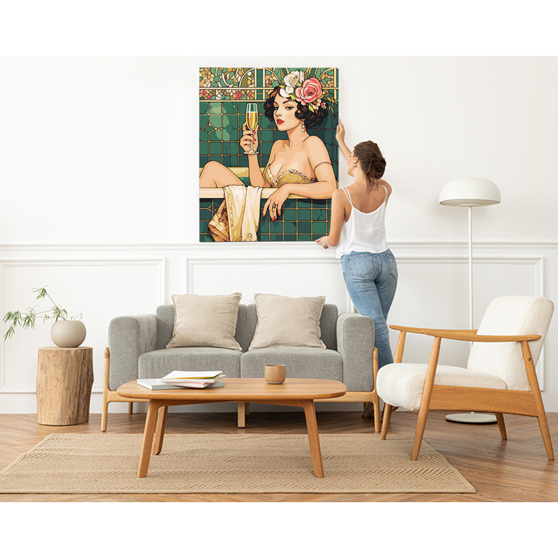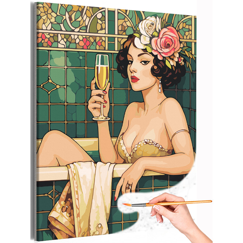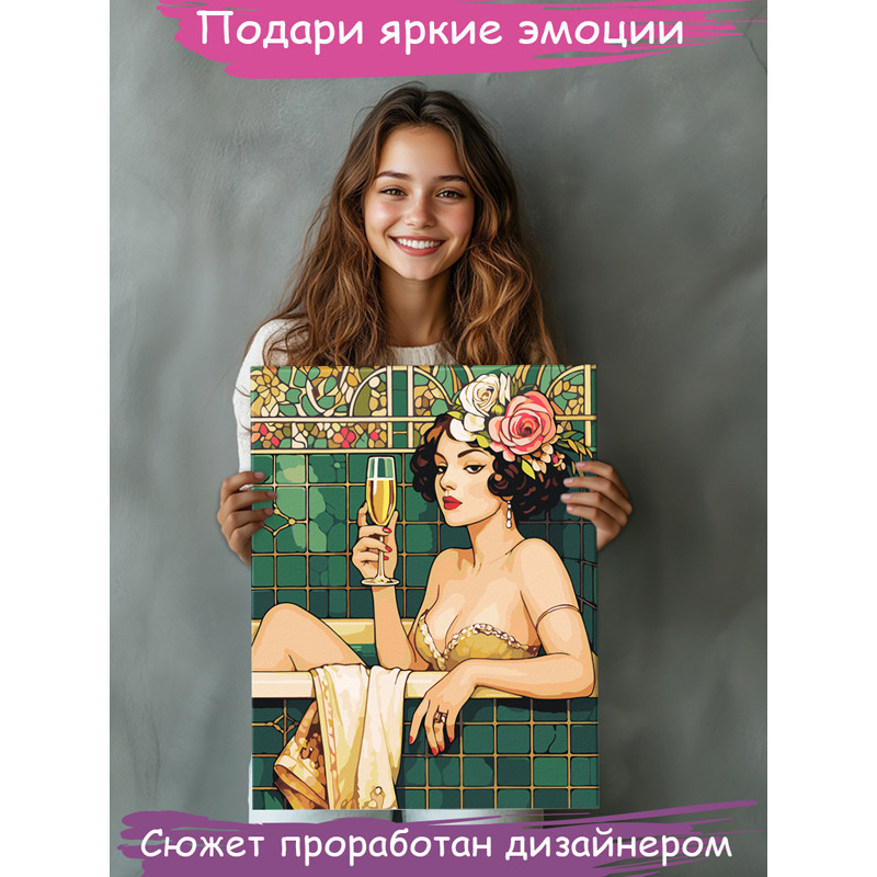 Девушка с бокалом вина Ретро стиль Обнаженная женщина Страсть романтика Раскраска картина по номерам на холсте