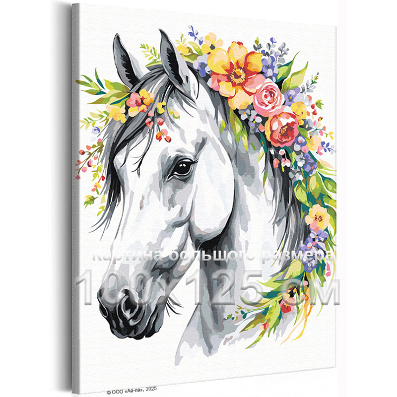 Лошадь с цветами Животные Символ года Новогодняя 100х125 Раскраска картина по номерам на холсте