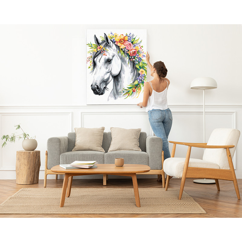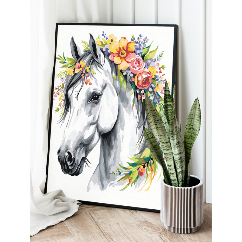 Лошадь с цветами Животные Символ года Новогодняя 100х125 Раскраска картина по номерам на холсте AAAA-NK1211-100x125