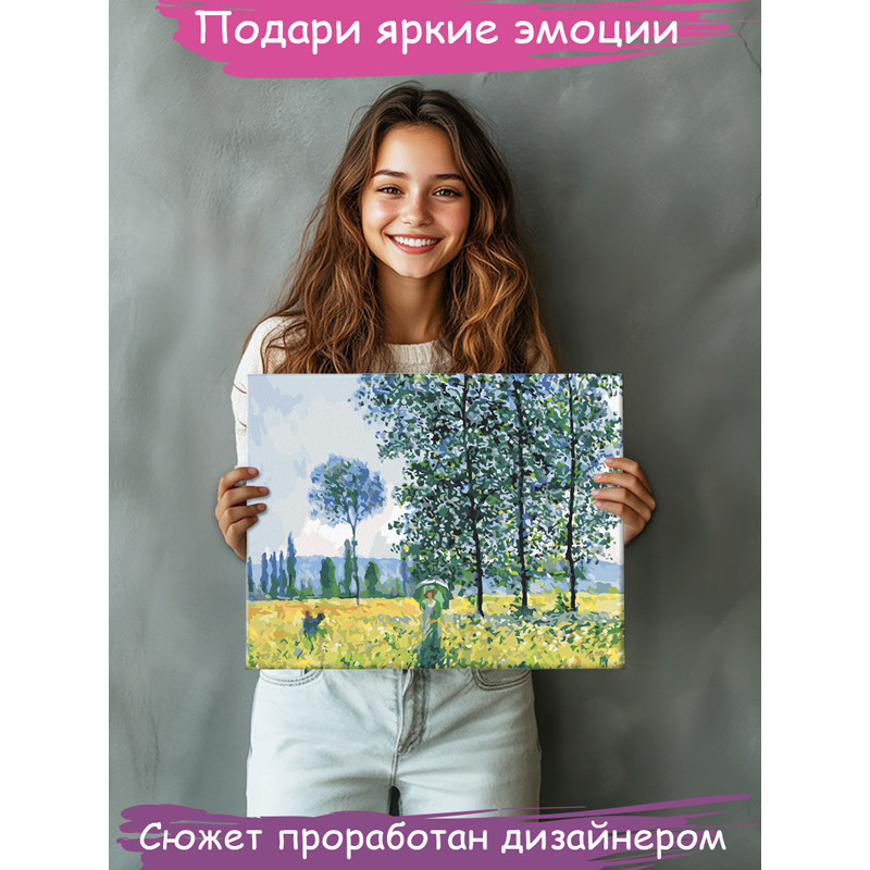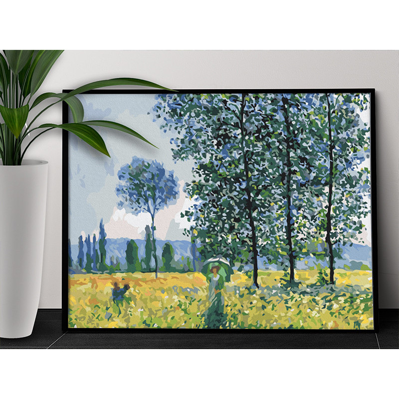 Клод Моне Эффект солнечного света под тополями Мировые шедевры искусства Известные картины Импрессионизм Пейзаж Раскраска картина по номерам на холсте AAAA-NK1259