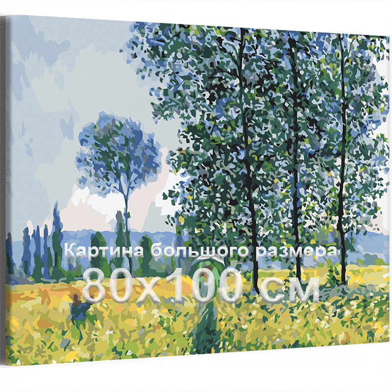 Клод Моне Эффект солнечного света под тополями Мировые шедевры искусства Известные картины Импрессионизм Пейзаж 80х100 Раскраска картина по номерам на холсте