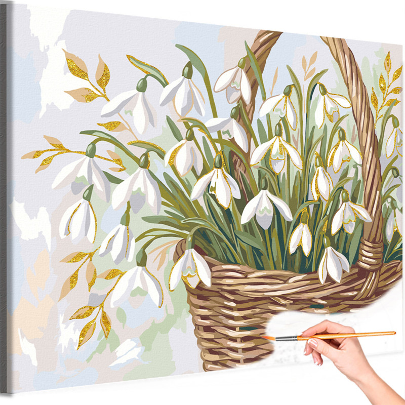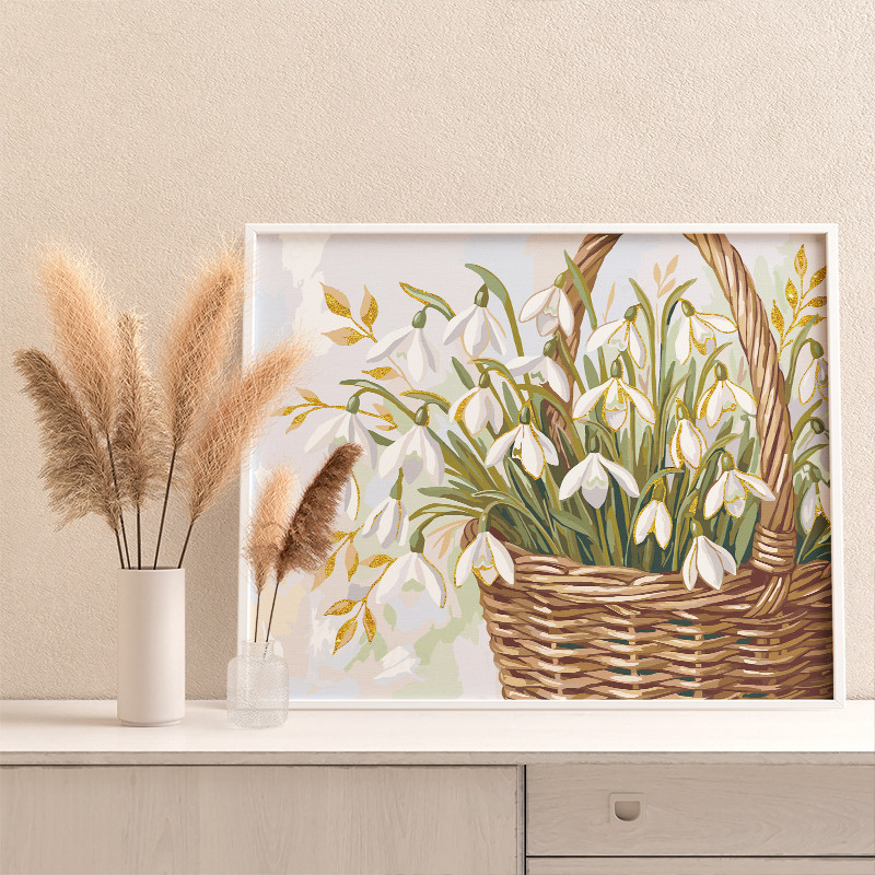 Подснежники Цветы Букет Натюрморт Нежная Для мамы 8 марта Интерьерная Раскраска картина по номерам на холсте с металлической краской