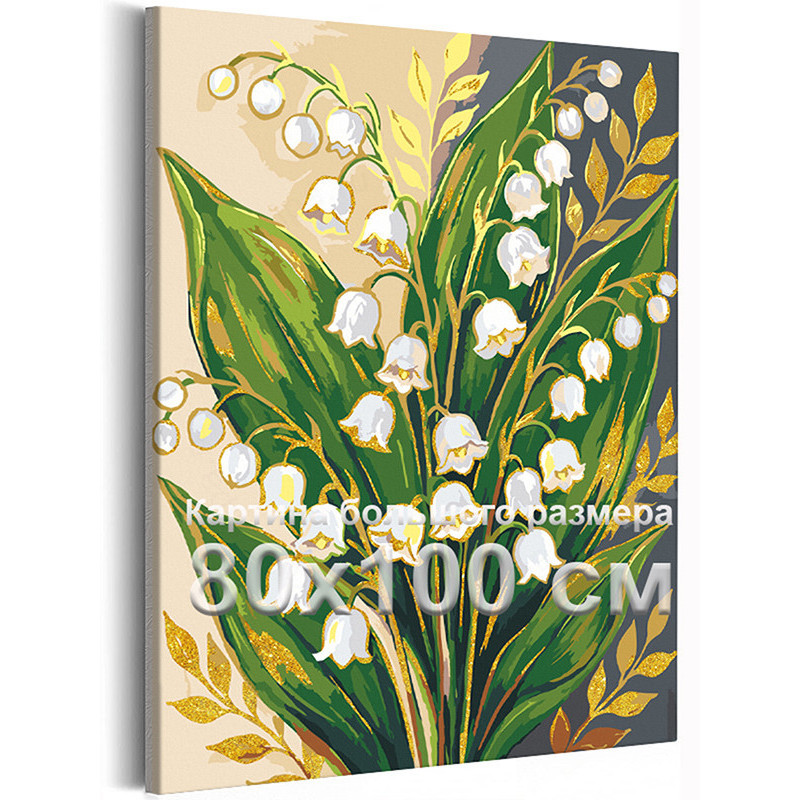 Ландыши с золотой краской Цветы Букет Нежная Легкая Для мамы 8 марта Интерьерная 80х100 Раскраска картина по номерам на холсте с металлической краской