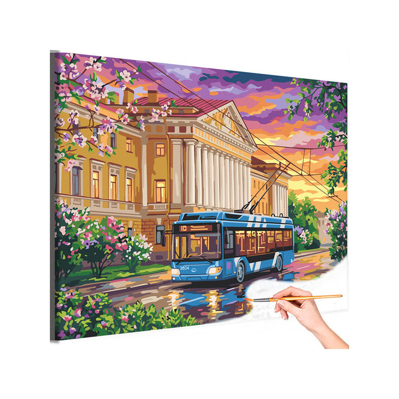 Адмиралтейство Санкт-Петербург Городской пейзаж Троллейбус Города и страны Питер Раскраска картина по номерам на холсте AAAA-NK1626