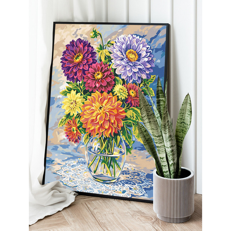 Хризантемы Цветы в вазе Натюрморт Букет Натюрморт Яркая Интерьерная Для мамы 8 марта 100х125 Раскраска картина по номерам на холсте