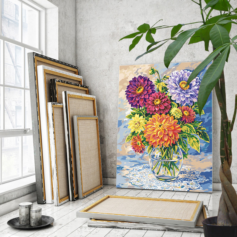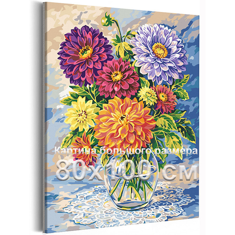 Хризантемы Цветы в вазе Натюрморт Букет Натюрморт Яркая Интерьерная Для мамы 8 марта 80х100 Раскраска картина по номерам на холсте