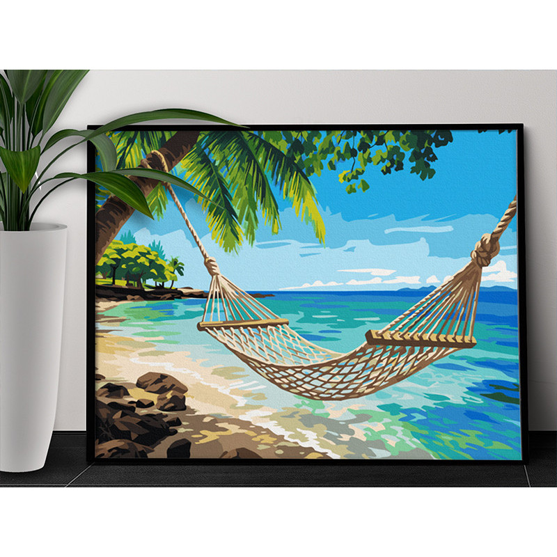 Море Гамак на пляже Пальмы Релакс Океан Вода Морской пейзаж Природа Мальдивы 100х125 Раскраска картина по номерам на холсте AAAA-NK1654-100x125