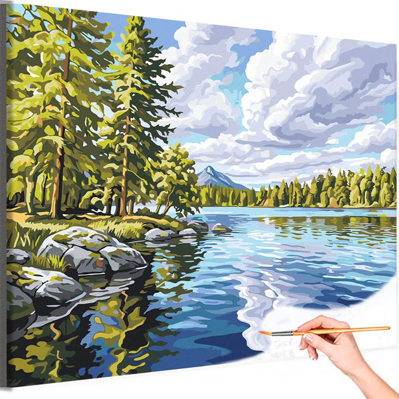 Пейзаж с озером и горами Природа Лес Лето Вода Алтай Горное озеро Раскраска картина по номерам на холсте