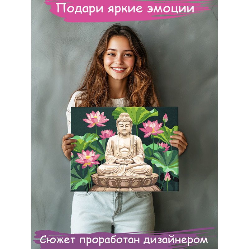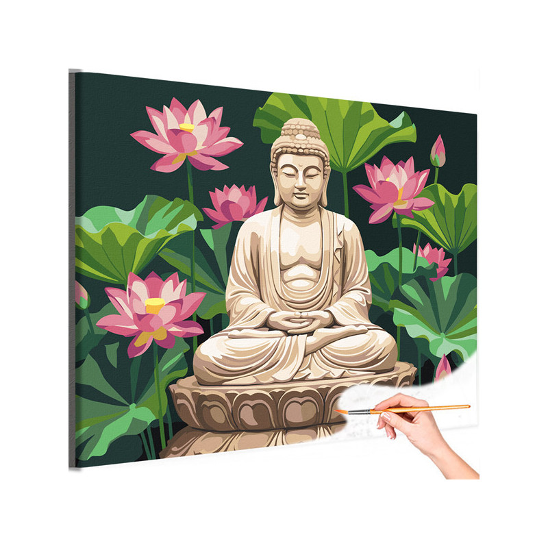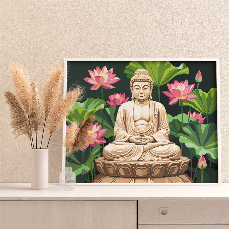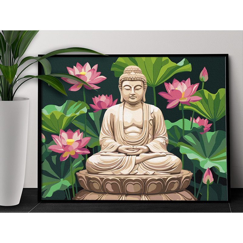 Будда и лотосы Религия Буддизм Медитация Дзен Гармония с собой Раскраска картина по номерам на холсте