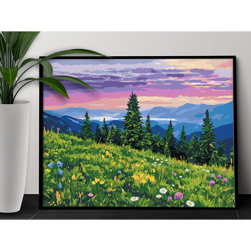 Горы Кавказа Пейзаж Природа Россия Лето Лес Цветы 80х100 Раскраска картина по номерам на холсте